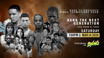 Tune in to BXNG for Kings Promotions' action-packed night of boxing. This electrifying event features hometown heroes, top prospects, and future champions.