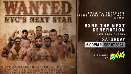 Tune in to BXNG for Primetime Promotions Next Gen Series. This action-packed card kicks off Primetime Promotions search for NYC's Next Boxing Star. Watch these brave warriors take their next step towards greatness.