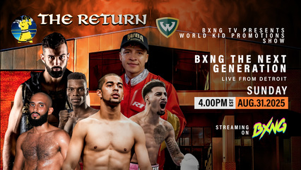 Tune in to BXNG for the Return of the World Kid Sadam Ali, live from Wayne State in Detroit. This incredible event features exciting prospects, top contenders, and former and future champions.